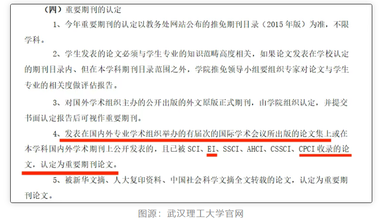 武汉理工大学的文科保研考博申请条件中,均表示EISCI/SSCI/CPCI论文、国际学术会议论文可作为加分项。